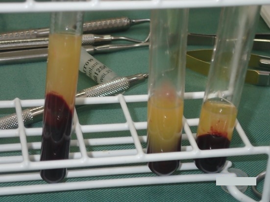 当院ではGBRの際に上記の補填材に加え、患者さまから7cc程度を3本採血して、成分を抽出したものを使用します。