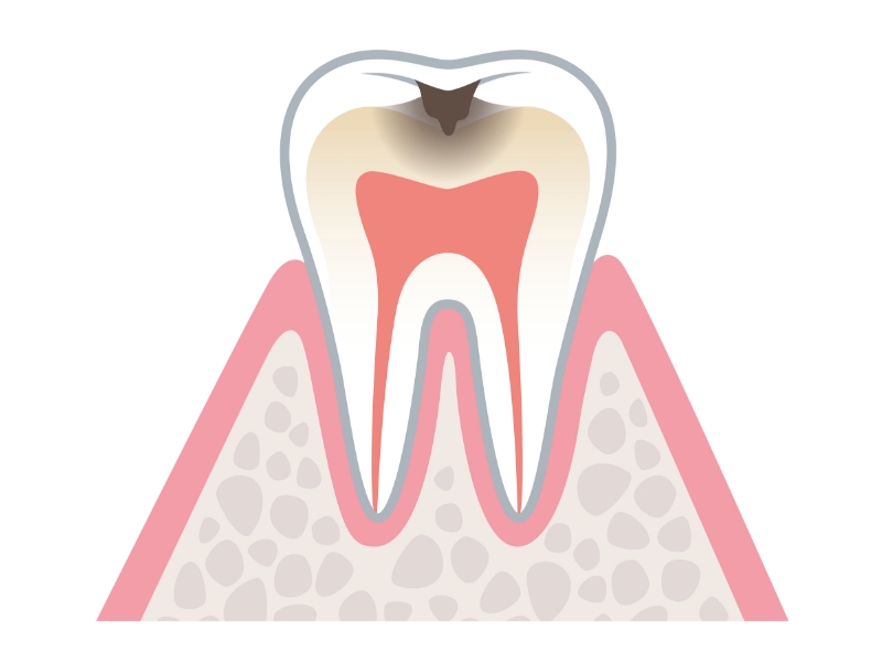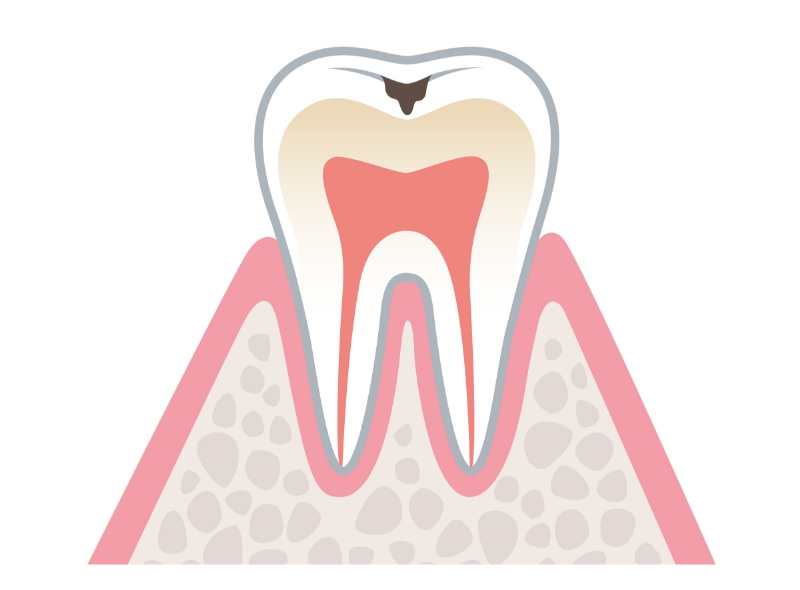 むし歯が進行し、エナメル質が溶け始めると、歯の表面に小さな穴が開きます。この段階では、むし歯を除去し、適切な詰め物で修復する必要があります。症例によっては、詰め物を行わず、定期的な観察を行うこともありますが、基本的には早期の処置が推奨されます。