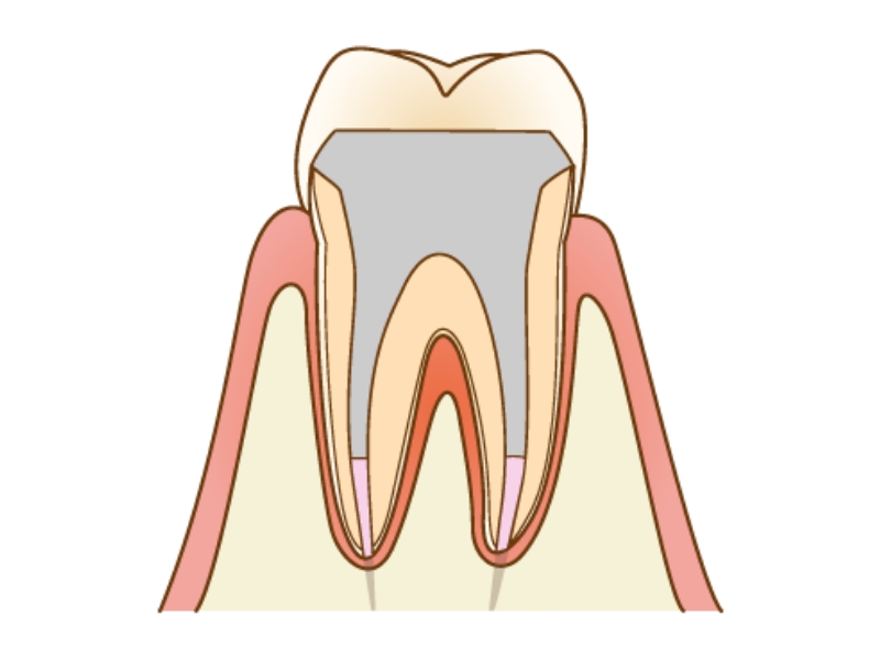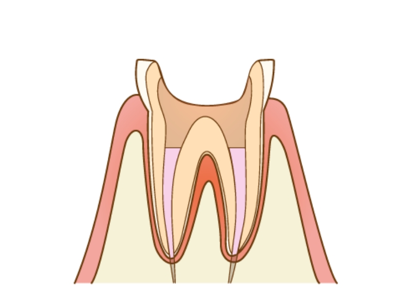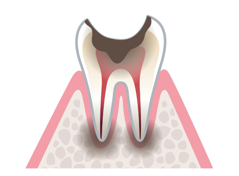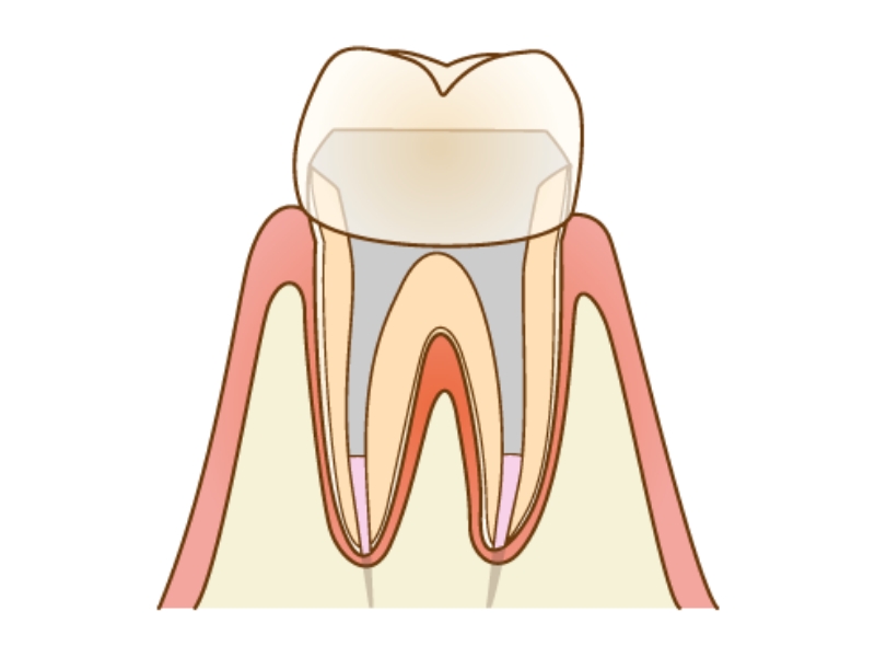むし歯が象牙質まで到達すると、神経に近い部位まで細菌が侵入します。象牙質は神経との距離が近いため、温度変化などの刺激で痛みを感じやすくなるのが特徴です。この段階では、むし歯を除去し、適切な詰め物や被せ物で歯を保護しなければなりません。症状によっては、神経の除去(抜髄)が必要になるケースもあります。