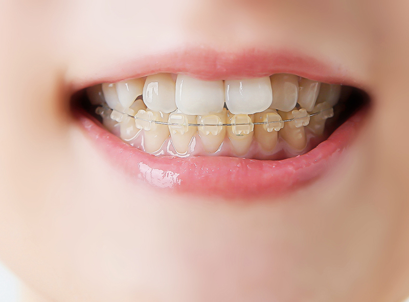 当院では、透明のブラケットを白いワイヤーで結ぶ目立たないタイプのものもご用意しています。