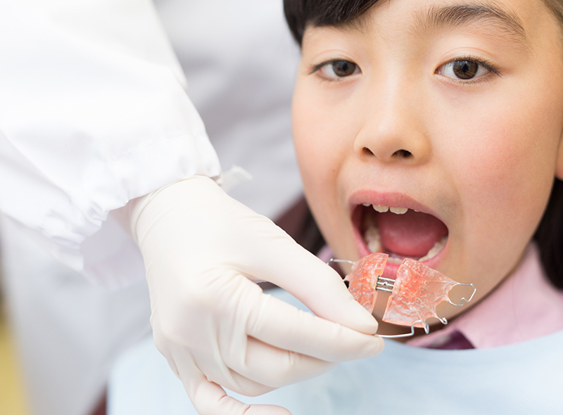 小児矯正のメリットは複数ありますが、あごの成長を利用して歯がきれいに並ぶ環境を作れるのも小児期ならではの利点です。骨がまだ柔らかいので、上顎前突(出っ歯)や下顎前突(受け口)などの症例でも、少ない負担で治療できます。大人になってからではあごの幅を広げることはできませんし、小児期の矯正は効率がいいので、トータル的な矯正の負担軽減が可能です。