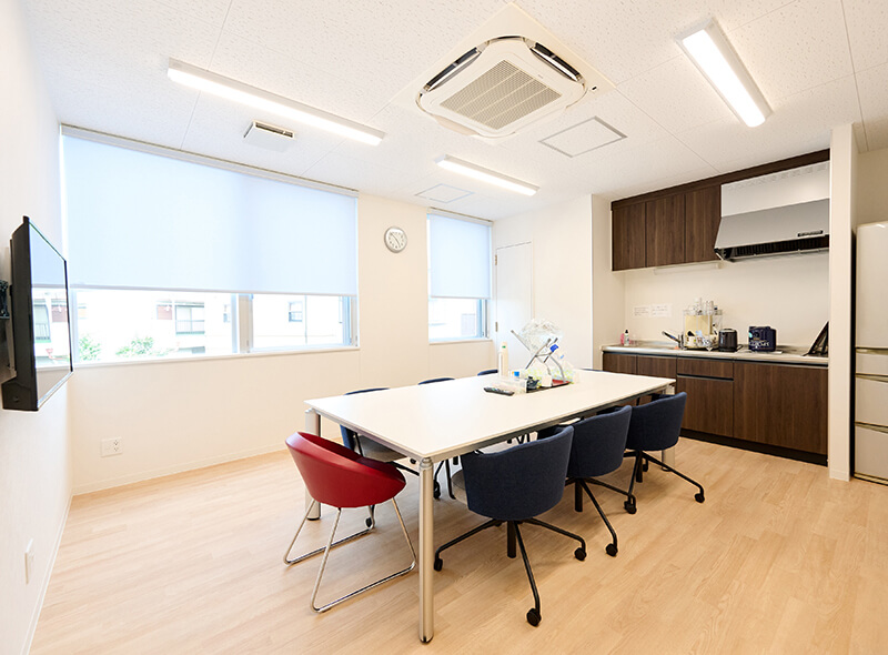 スタッフが快適に働けるよう、専用のキッチンや広々としたスタッフルームをご用意しています。休憩時間にはしっかりリフレッシュでき、オンとオフの切り替えもスムーズ。
