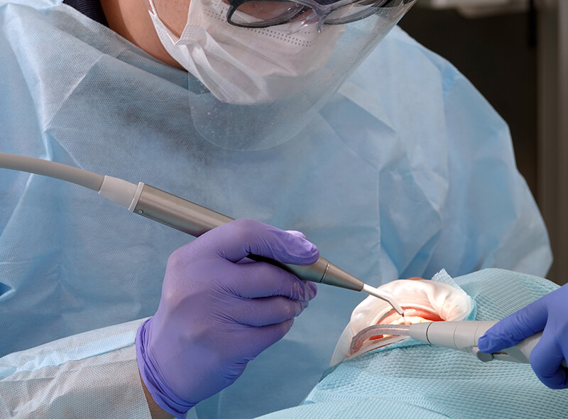 40名を超えるスタッフで、1日平均300件の診療と年間500症例に上るインプラント・歯周外科手術を行っています。